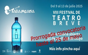 Prorrogada la convocatoria para el 8 Festival de teatro breve, que se celebrará del 9 al 13 de julio de 2025, una nueva edición de este singular festival de Sala Tarambana. Hasta el 25 de mayo de 2025, inclusive, tienes de plazo para presentar tus propuestas.